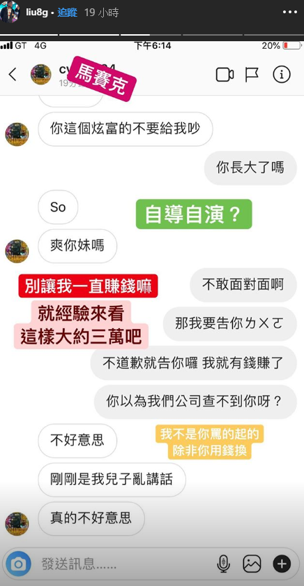 後來否希則回應:「不敢面對面啊,那我要告你囉,不道歉就告你囉,我就有錢賺了,你以為我們公司查不到你呀?」,而網友看見後,則秒龜縮急道歉:「不好意思,剛剛是我兒子亂講話」,疑似根本自導自演,否希也表示以經驗來看,這樣的罵人程度大概可以求償三萬元,「別讓我一直賺錢嘛」,更強調:「我不是你罵得起的,除非你用錢換」。