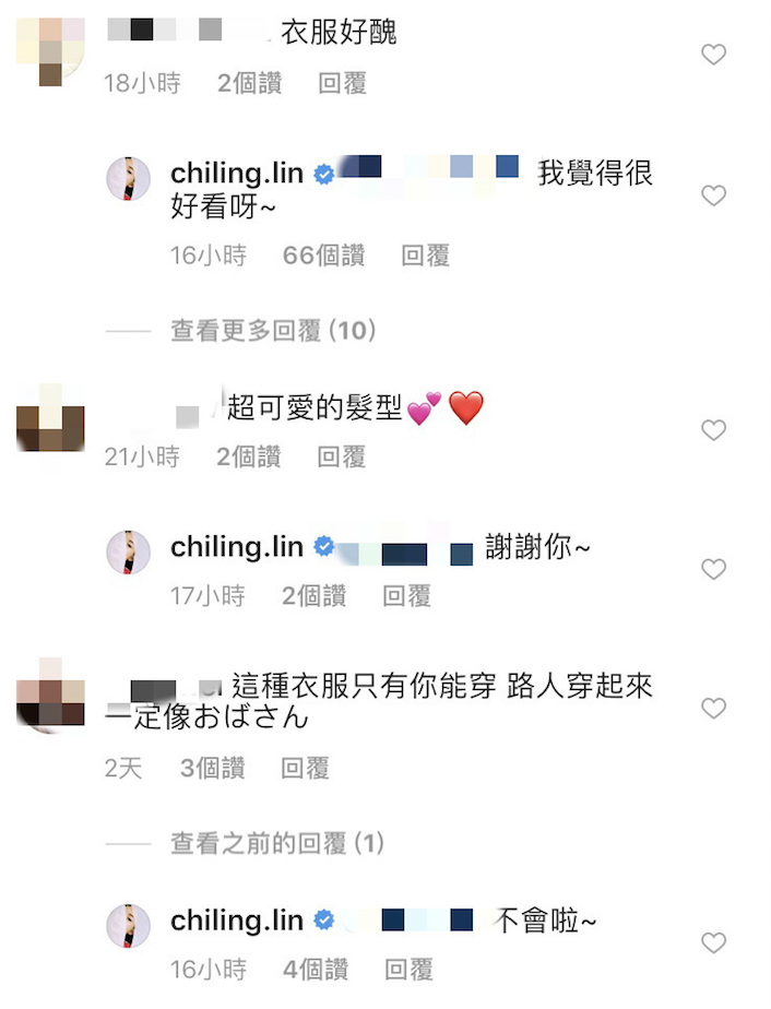 沒想到她將照片po上網後,竟引來酸民留言「今天走阿花風?」、「衣服好醜」,而她看到留言後,不但沒生氣,反而還笑著回應「我覺得很好看呀」,高EQ化解尷尬。另外,也有網友說,雖然這套衣服好看,但除了她以外根本沒有其他人能撐得起來,「路人穿起來一定像歐巴桑」,她則謙虛地說「不會啦~」