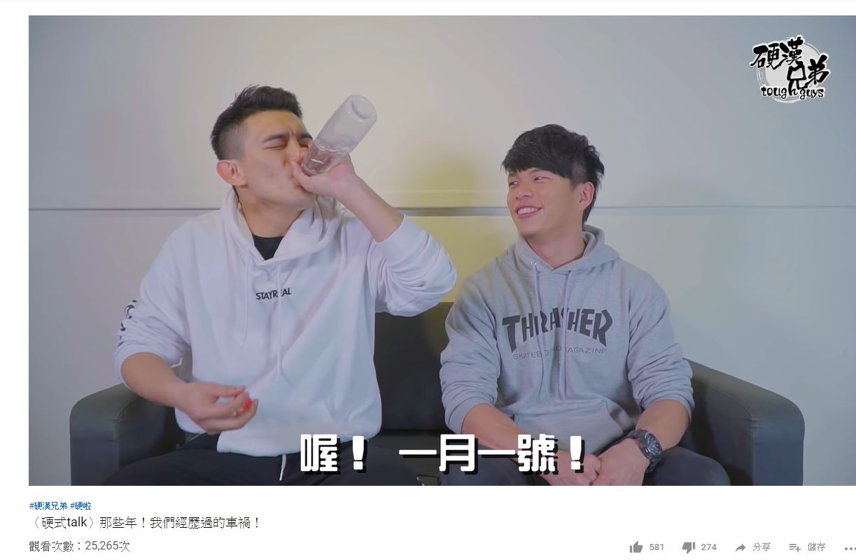 24日,台灣論壇「dcard」一名網友為自己的朋友聲援,指出硬漢兄弟一支影片「那些年我們經歷過的車禍」拍攝內容不妥,包括公開好友車禍過程,以及在影片中狂言到「這兩個Youtuber撞過我」。為此,該名dcard網友於文中要求外界為他朋友平反,並說到「為何這樣如果沒素質的youtuber還有人追蹤」,同時希望藉此呼籲外界「一起挺身撻伐不追蹤甚至退追蹤沒內容youtuber」。