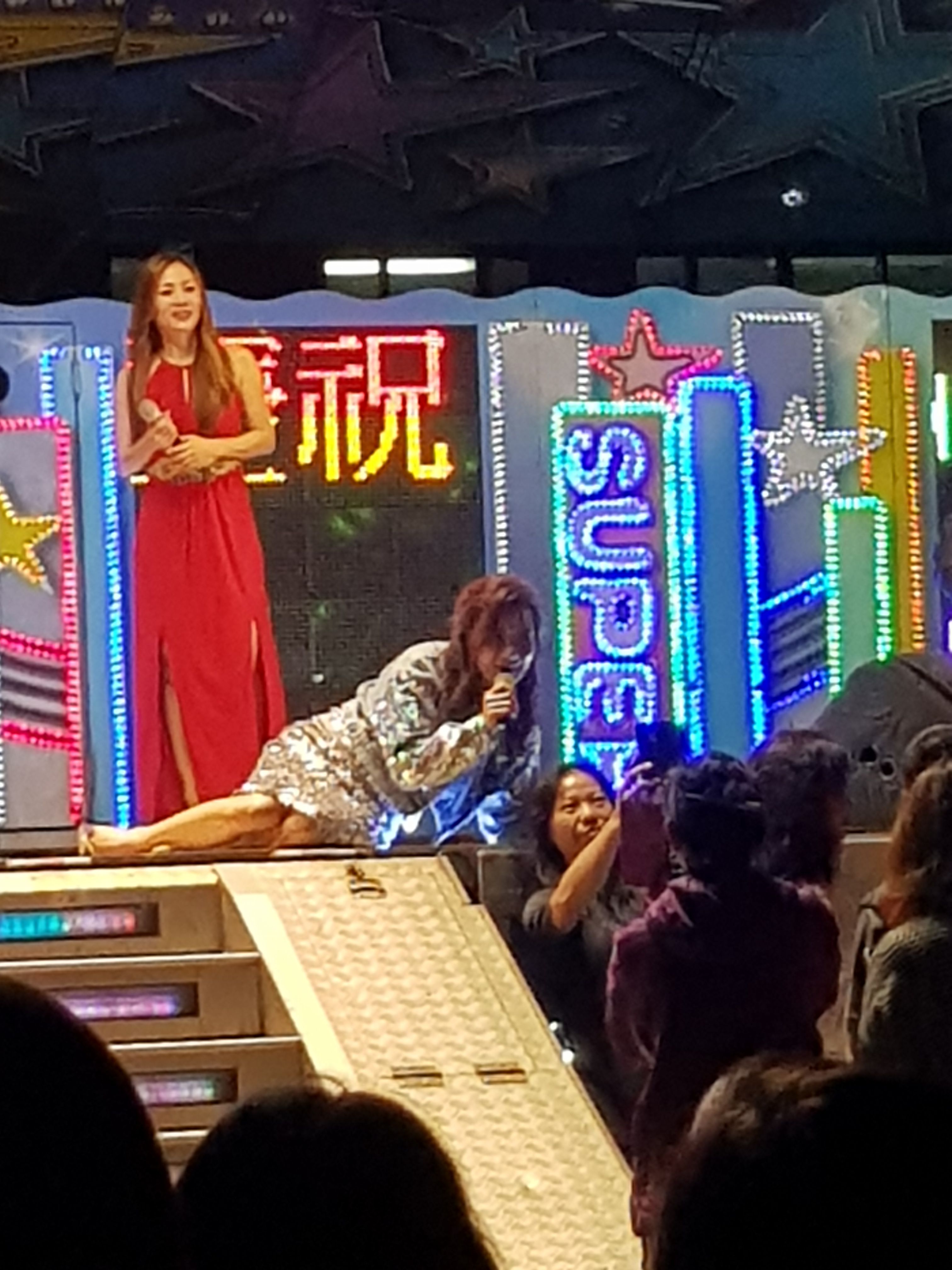 只見楊繡惠穿著一身亮片及膝洋裝登台,照片中的她半跪坐在舞台上,讓台下的粉絲能和她自拍,完全不顧自己可能會走光,也不顧自己在台上的形象,敬業模樣讓網友看了相當感動,不少人紛紛大讚:「她講話真的很好笑」、「很厲害很有實力的藝人,很欣賞她」、「而且他還很顧慮大家的感受什麼的,很棒的藝人」、「真的~會耍大牌的是裝不來的,真的親民」、「本來覺得她是一個很吵的老藝人,不過留言看下來對她改觀了!」