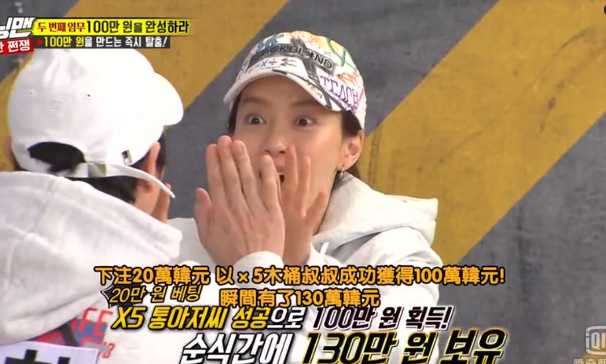 24日播出的節目中,金鐘國、宋智孝、梁世燦和哈哈需透過「海盜桶」遊戲脫困,而一向被稱為節目「黃金手」的宋智孝,一次就讓海盜跳起,讓原本就有100萬韓元的宋智孝,獎金飆升到130萬韓元,哈哈跟梁世燦先是驚訝,也開始爭奪他手中多出的30萬獎金(約台幣8200元),要求「嫂子」宋智孝可以把獎金捐給他們。