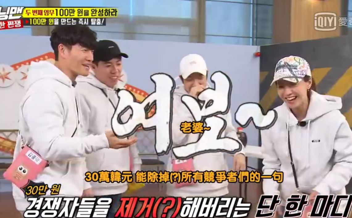 然而一直保持沉默的金鐘國突然從椅子跳起,一聲「老婆」脫口而出就是要爭奪獎金。面對從不在螢光幕前承認「懵鐘CP」的金鐘國突然大喊老婆,哈哈和梁世燦全都因為受到太大驚訝而笑翻。