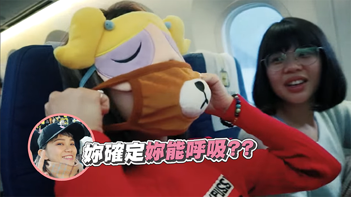 熊熊近日抽空和朋友到日本東京旅遊,一上飛機她就開始展示她的「機上時尚」,先是拿出飛天小女警的眼罩,戴上去後完全認不出她是誰;原本還打算帶著熊熊口罩,結果朋友看了笑翻:「妳這樣能呼吸嗎?」最後她只好打消了全副武裝的念頭。