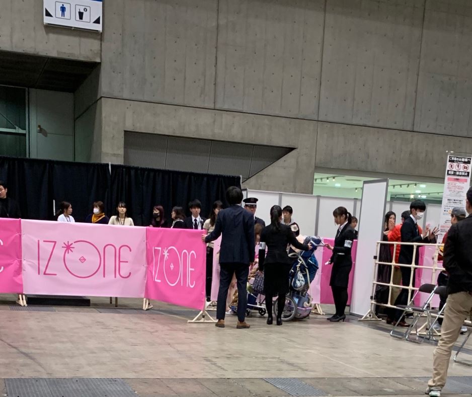 16日開始,IZ*ONE陸續在日本各地舉行擊掌會,23日,於日本千葉市的幕張展覽館舉行,不少粉絲都冒著低溫長時間排隊只為了和IZ*ONE近距離互動,現場一名當地粉絲更目擊,一對年邁老夫妻也現身其中。照片中,該名爺爺坐在輪椅中身上還配帶著呼吸器,被妻子推著來到擊掌會現場,而恰巧目擊的宮脇咲良就上前提醒他們「不要排隊等拍手會」,並請求他們移到另一個棚子下避寒。