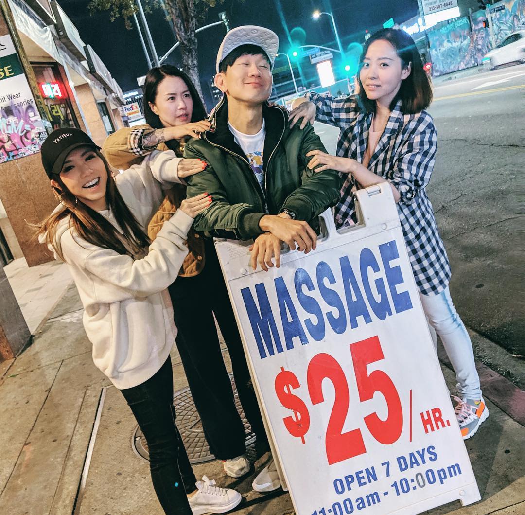 25日林俊傑在IG PO出和鄧紫棋、張靚穎以及譚維維「三大歌后」在美國洛杉磯的合照。只見林俊傑戴著一頂白色的棒球帽,雙手靠在一個馬殺雞的廣告招牌上,另外三位天后在他身後替他按摩。他開心在貼文寫著:「在最遙遠的地方,遇到最熟悉的朋友!三位天后幫我按摩,真幸福!」