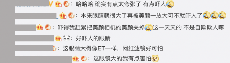 《鳳凰網娛樂》在昨天曝光了一組趙薇使用網紅濾鏡的照片,本來就擁有一雙大眼的她,眼睛瞬間變成了2倍大,下巴的地方也被削尖了許多,跟過去Angelababy使用時的模樣有些神似,讓網友紛紛留言:「這眼睛大的我有點害怕」、「哈哈哈 確實有點太誇張了 有點嚇人」、「嚇得我趕緊把美顏相機的美顏關掉」、「這眼睛大得像ET一樣,網紅濾鏡好可怕」