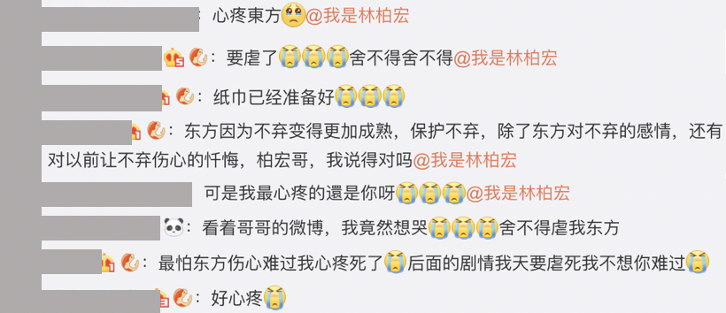26號時,飾演東方炻的林柏宏在微博上發了一則貼文說道:「原來我做了那麼多讓你痛苦的事卻渾然不覺,我一定要用生命最大的愛保護你,不再讓你受傷受傷。」,並寫下「東方炻開虐倒數。」的標籤,讓網友紛紛直呼:「可是我最心疼的還是你呀」、「看著哥哥的微博,我竟然想哭 捨不得虐我東方!」、「心疼東方」、「紙巾已經準備好」,相當不捨與心疼。