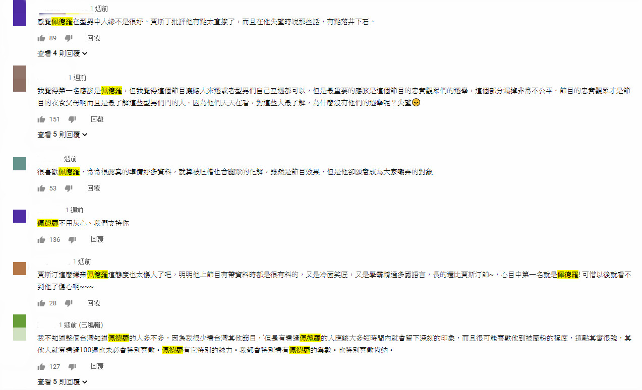 在該集節目底下也湧入大批觀眾留言,紛紛力挺佩德羅並對他加油打氣:「佩德羅怎麼可能輸賈斯汀」、「第一名必須佩德羅啊」、「賈斯汀批評他有點太直接了,而且在他失望時說那些話,有點落井下石」、「很喜歡佩德羅,常常很認真的準備好多資料,就算被吐槽也會幽默的化解」、「賈斯汀這麼嫌棄佩德羅這態度也太傷人了吧」、「佩德羅才是我們這些忠實觀眾心中的第一名!」