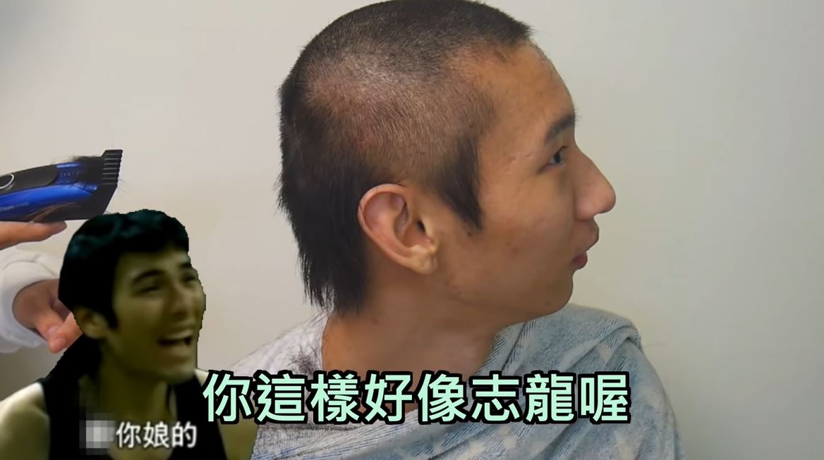 接著,便由好友「放火」和「尊」輪番上陣為「小玉」剃光頭,「尊」先是飛快的在「小玉」的頭髮上刷過一條「高速公路」,讓「小玉」慌張的詢問「我現在長怎樣」,而一旁的「放火」更連連表示「超醜」,剃髮的過程中,一旁的「笑笑」更表示小玉超像「河童」和電影《艋舺》的「志龍」,而「小玉」也苦中作樂重現經典台詞「GETA大仔死了」「你為什麼要逼我啊」。