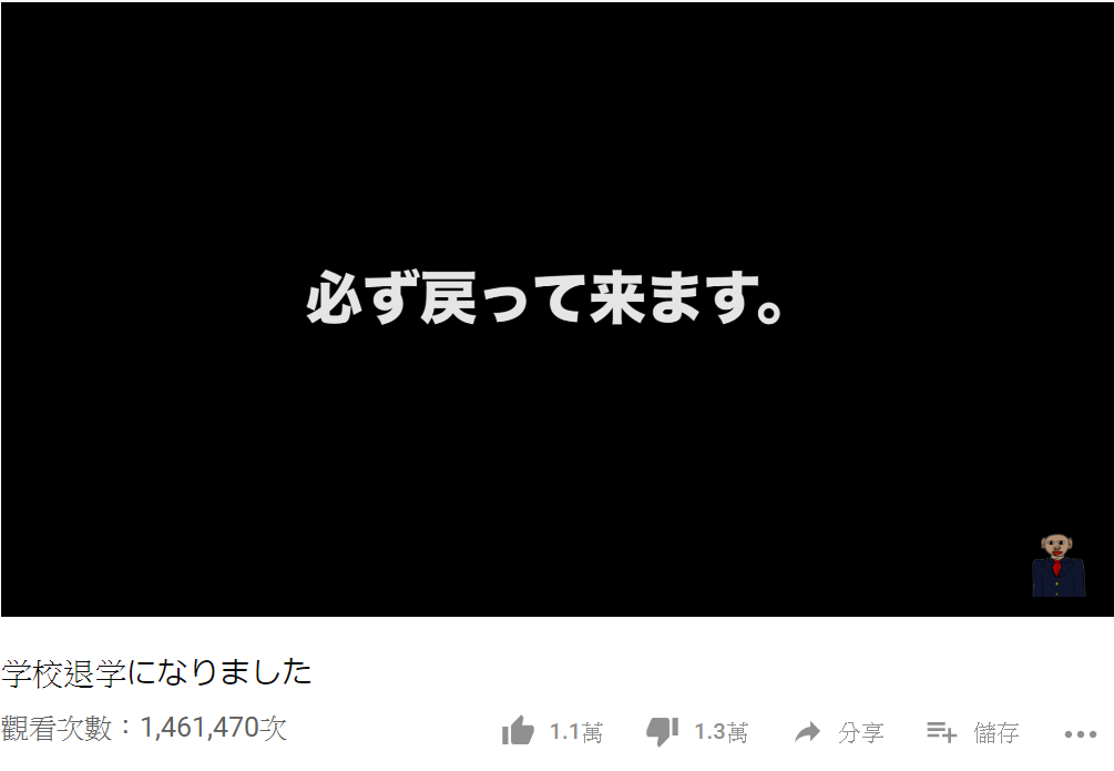 但是事情的發展出乎他們以及網友的預料,這些爭議性影片被校方發現,社會也出現檢討的聲浪,三人經營的YouTube頻道將過去所有拍攝的影片設為不公開,而取而代之的是一部寫著退學通知書的影片,說到三人中有一人遭到退學處分,讓許多網友看到十分驚訝,影片觀看次數也瞬間飆破百萬人,但也有網友質疑是為了炒作話題才發布的影片。