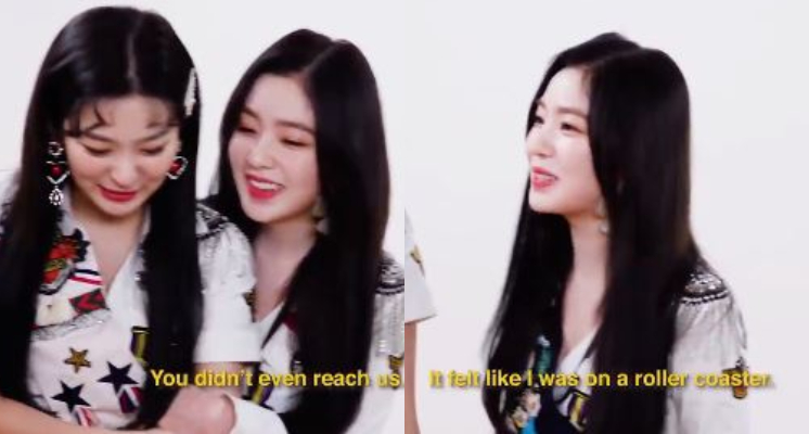 此外,影片中輪到Irene進行信任遊戲時,生性膽小的Irene卻數度無法放心向後倒進成員手中,更直呼「我覺得好像在坐雲霄飛車」,接著害怕的跑到澀琪身後,緊緊抓住澀琪的手臂,這一幕也讓網友直呼「Irene抓了澀琪的手臂我真的看哭了」、「好感動啊」。