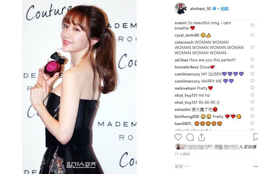 韓國女團EXID過去以一支歌曲《Up & Down》的直拍影片迅速爆紅,近期演藝事業重心專注在日本,不僅將要發行首張日文專輯《Trouble》,上月中也結束在日本的巡迴演唱,目前EXID團體活動暫時休息。5日,成員Hani出席法國香氛品牌「巴黎羅莎Rochas」的公開活動,當日一套平口洋裝久違露出洶湧上圍,照片一出引起不少粉絲擔心走光更直呼「穿太露了吧」。