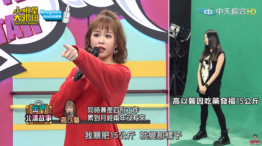 高以馨去看了醫生,醫生一檢查氣得責備她:「你知道你這樣真的很危險,你再晚來一點你可能就要死掉了!」此話一出也讓高以馨嚇壞,趕緊吃藥調整身體,結果藥才吃了兩個月,就因為內分泌失調導致暴肥15公斤,衣櫃衣服幾乎都穿不下,讓她自卑到不敢出門見朋友,還遭不少網友取笑,讓她相當痛苦。