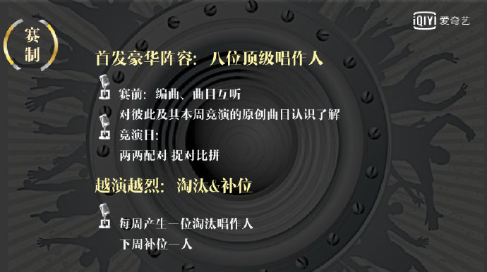 《我是唱作人》將成為華語樂壇首檔「明星唱作人原創作品競演」的節目,總導演將力邀所有擁有創作才華的音樂人,進行詞曲創作的比拼,並激發華語音樂市場原創能量,見證華語樂壇原創音樂的覺醒與復甦。