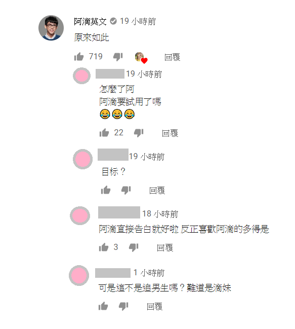 這次「蕾菈」所分享的「追男生五大招」,引起許多人的回應討論,其中最引人注目的便是過去自嘲是「魯蛇」的「阿滴」受教的表示「原來如此」,也令網友們紛紛留言回應要阿滴「試用告白」。