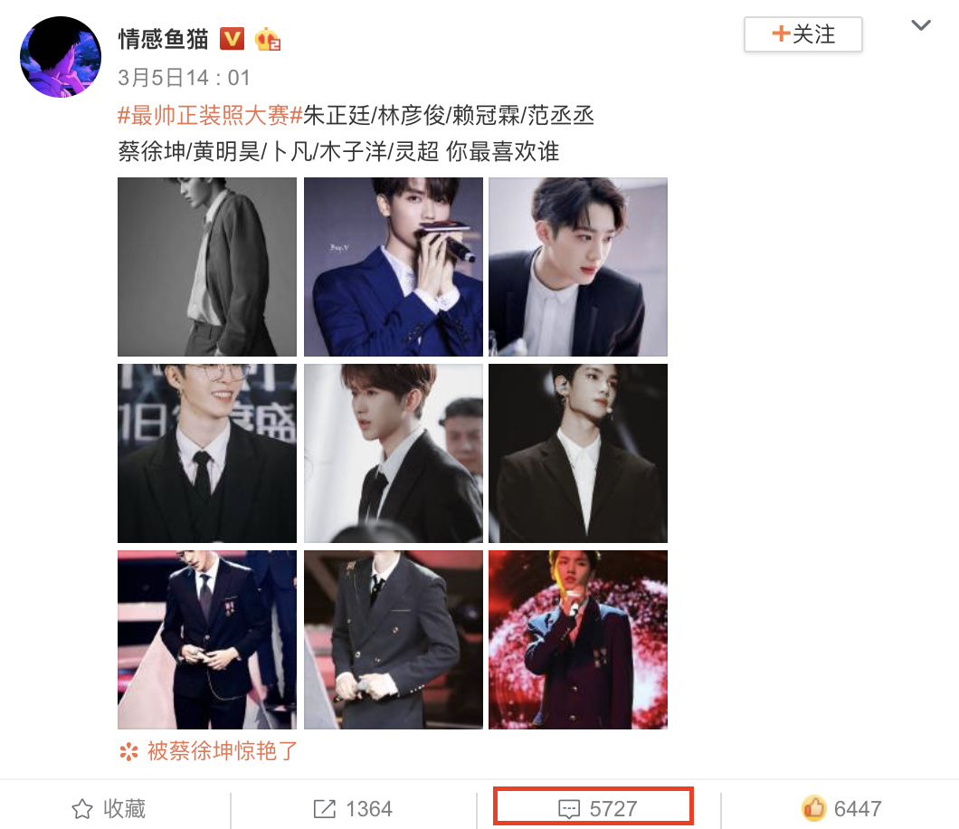 近期微博上又發起了許多有趣的票選討論,其中「最帥正裝照大賽」更是引發網友廣為討論,該博主提名了:林彥俊、賴冠霖、范丞丞、蔡徐坤等人,該則貼文也吸引了近6000則留言討論,許多網友也紛紛提出他們心中完美的人選。
