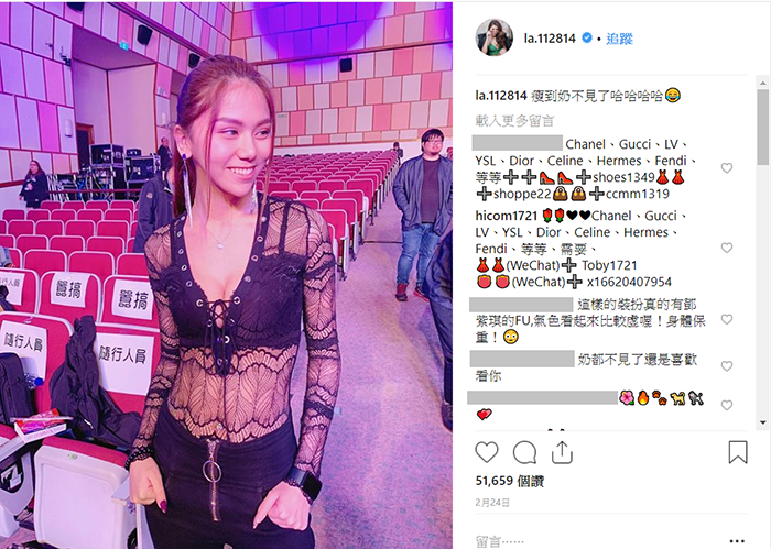 儘管瘦身成功令「蕾菈」相當滿意,但罩杯也隨之跟著縮水了,近期在「蕾菈」的IG上可見她對自己的「罩杯縮水」感到困擾,2月24日,「蕾菈」參加由「上班不要看」籌辦的「走鐘頒獎典禮」時,她PO了一張身穿黑色透膚蕾絲的照片,並寫道「瘦到奶不見了哈哈哈哈」。