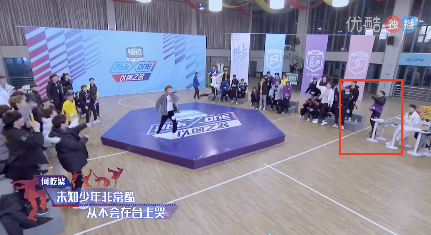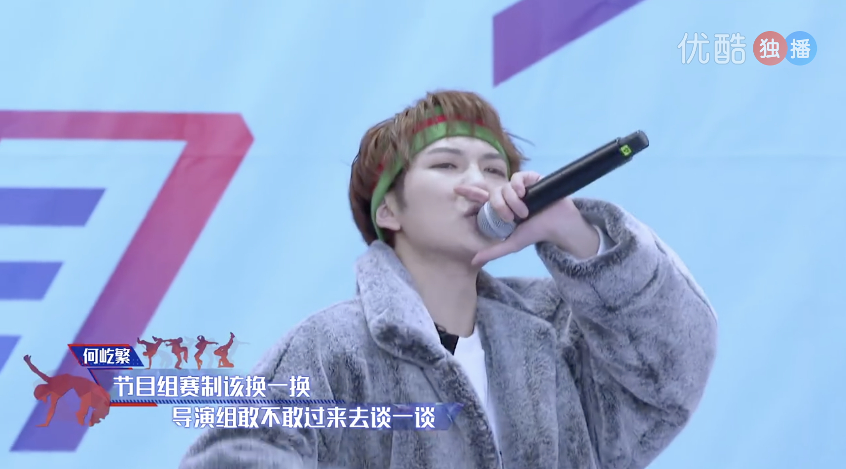 《以團之名》訓練生「何屹繁」在最新一集中,表演說唱時在副歌後唱到:「節目組賽制該換一換,導演組敢不敢過來去談一談,同意的舉起手給我來看一看,我們可沒時間陪你們玩」,唱完這兩句後一旁的練習生激動起立歡呼,現場氣氛相當燥,連特聘導師「周湯豪」都忍不住起立,也對他的表演讚不絕口。