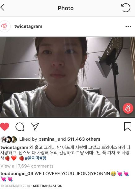 去年12月,正逢TWICE日韓兩邊行程滿檔時,定延透過VLIVE直播首度在鏡頭前落淚承認成員很累甚至道歉說到「沒能隱藏疲倦的樣子,覺得很抱歉」,當時另一成員Sana就立即上傳另一自拍影片聲援定延,TWICE成員相互支持的情感一直讓外界十分動容。