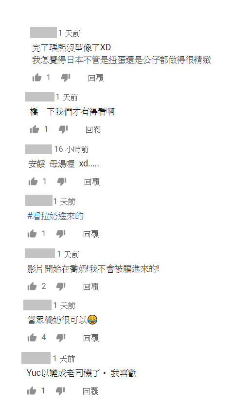 此支影片上傳後,引人關注的除了扭蛋本身,便是「瑀熙」喬奶的驚人之舉了,更令網友留言表示「完了瑀熙沒型像(形象)了XD我怎覺得日本不管是扭蛋還是公仔都做得很精緻」「橋(喬)一下我們才有得看啊」「當眾橋(喬)奶很可以」「影片開始在喬奶!我不會被騙進來的!」。