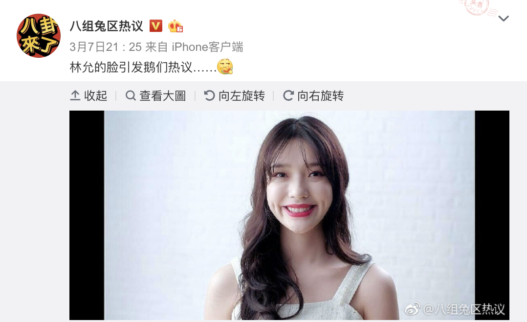 知名娛樂博主「八組兔區熱議」貼出過去林允拍攝的廣告截圖,並寫下:「林允的臉引發熱議…」,而對此網友也紛紛質疑她是否去整形了,留言表示:「別再動了吧,之前就挺好的了」、「這滿滿的塑膠感啊!」、「這是開了嘴角了嗎?」、「僵了點好像」、「明明就很年輕…非要把臉折騰成這樣」,甚至有網友稱她是「職業假笑」。