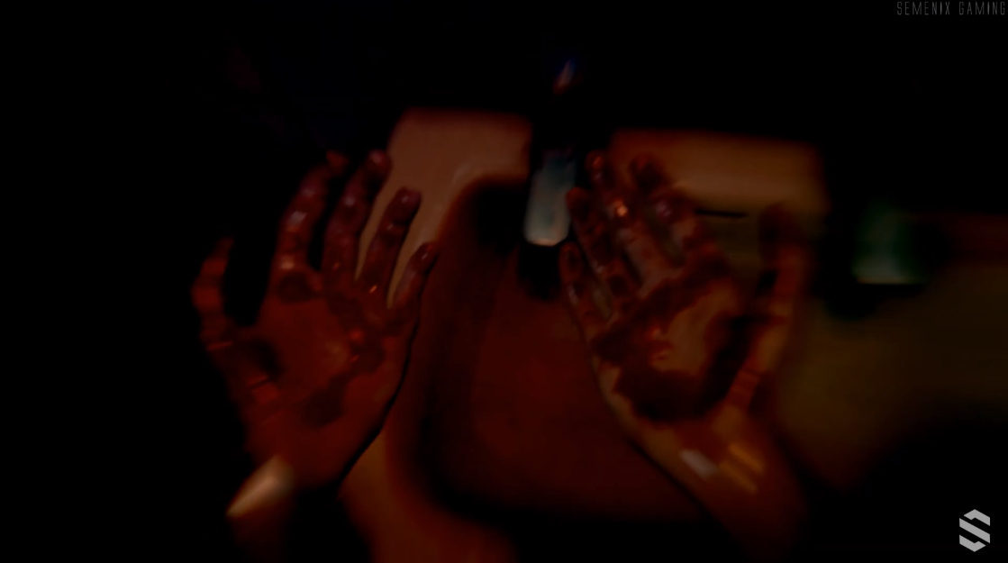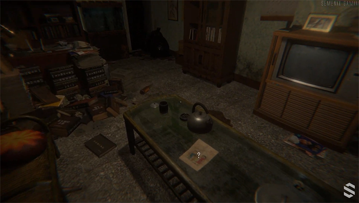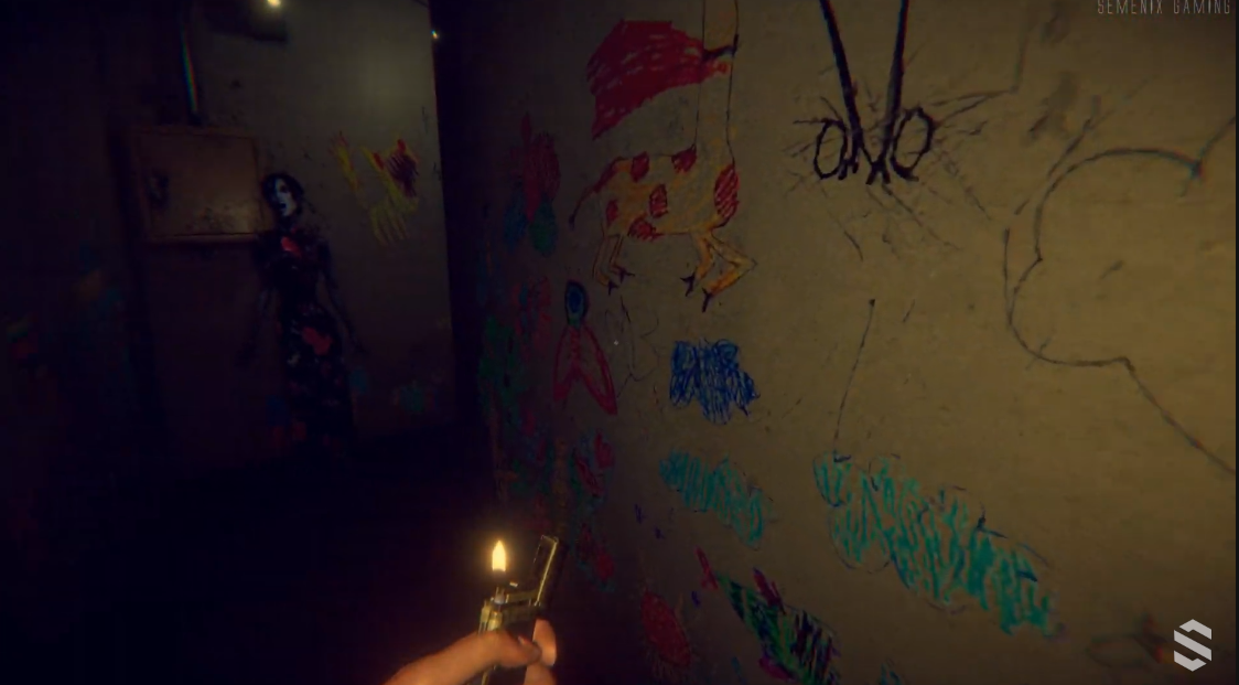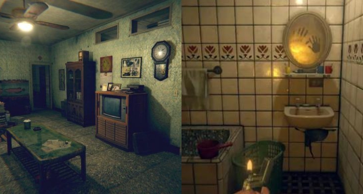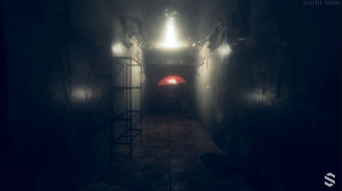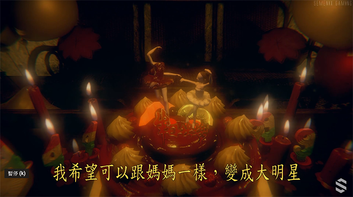 2.遊戲剛開始美心媽一直問「美心在哪裡」,接著杜豐于情緒崩潰,隨後他走出門外只看到一把傘在遠方,突然燈光閃爍後雨傘也跟著消失,只剩下一隻鞋和地板上的一灘血。