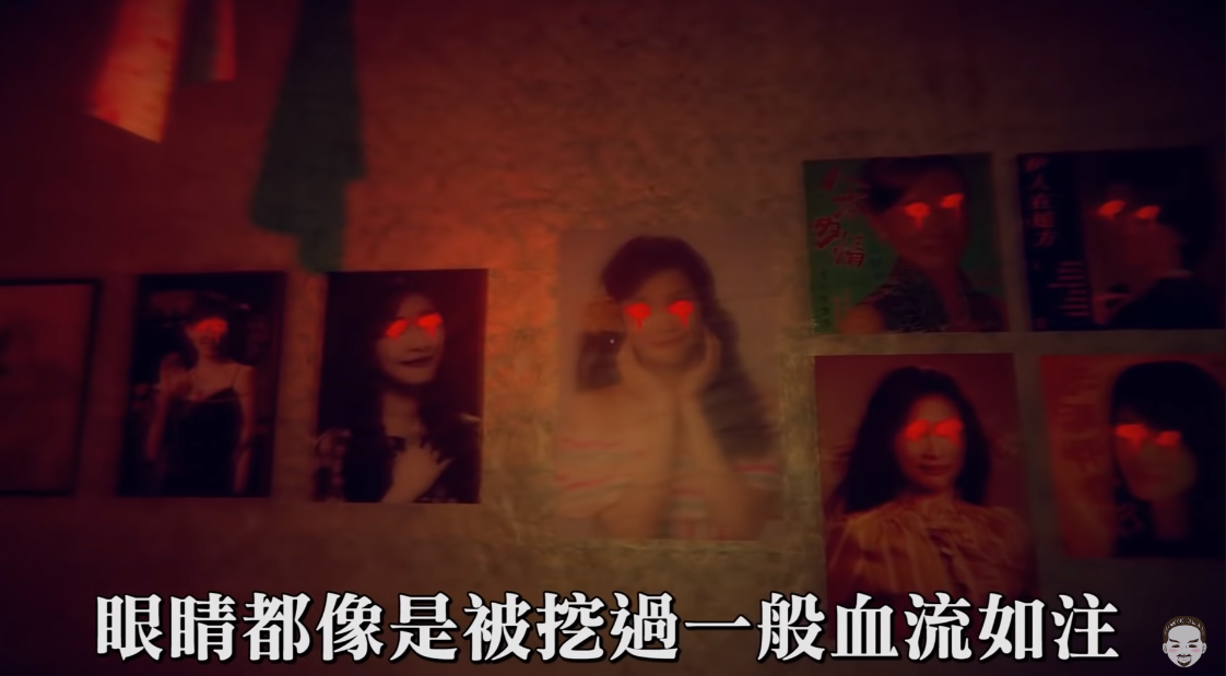 6.在唱盤放下去之後美心聽著音樂哭泣,接著美心就直接消失了,接踵而來的只有美心媽的每張照片,眼睛都像是被挖過一般血流如柱。
