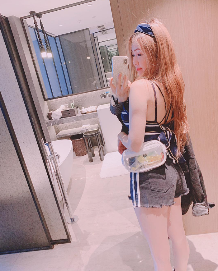 從她曝光的照片可見,當天她一連換了兩套穿搭,從長袖長褲換成無袖短褲,並透露自己到了一個「比台灣慢一小時」、「像夏天」、「能天天短袖短褲」的地方,關鍵字一曝光,立刻就被粉絲猜出「柬埔寨」。照片中,ㄚ頭穿著條紋綁帶小背心,秀出大片白皙美背,下身則穿著一條休閒牛仔短褲,小而挺的屁股蛋若隱若現,一頭浪漫長髮隨興微捲,既時髦又相當有女人味。