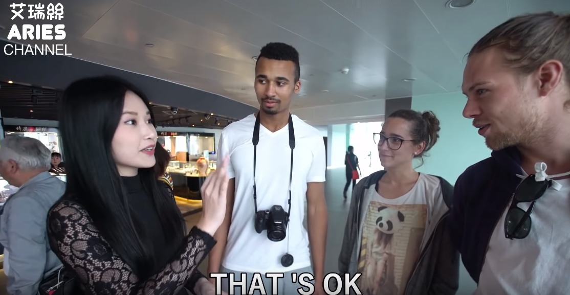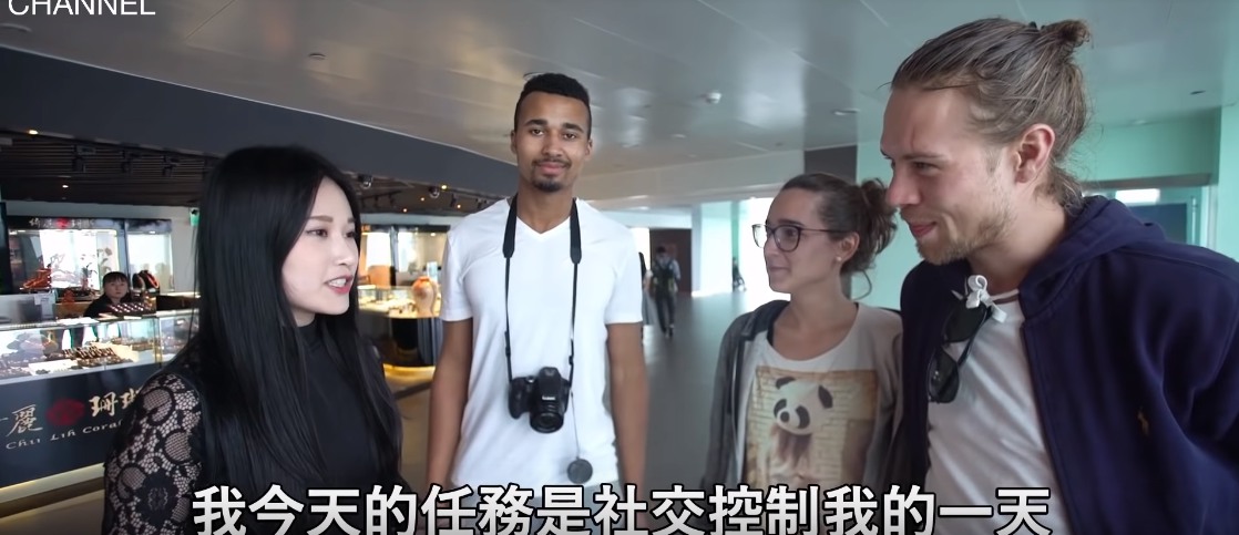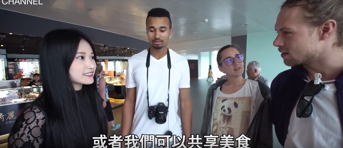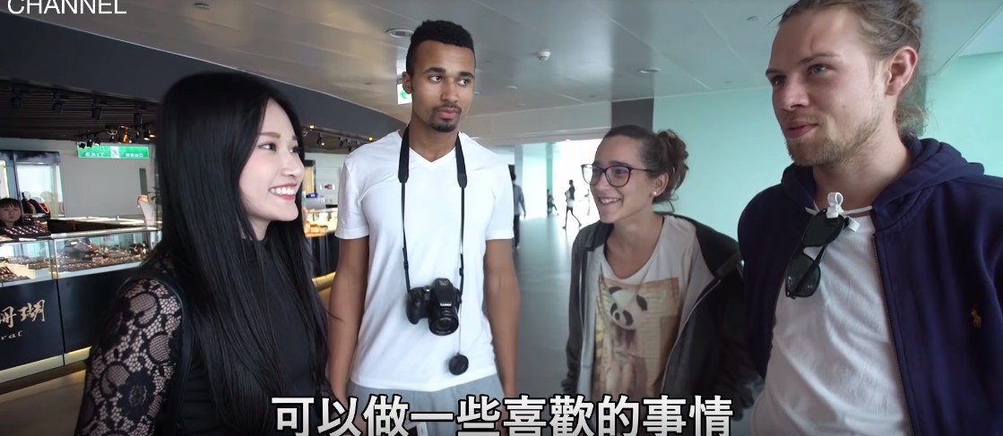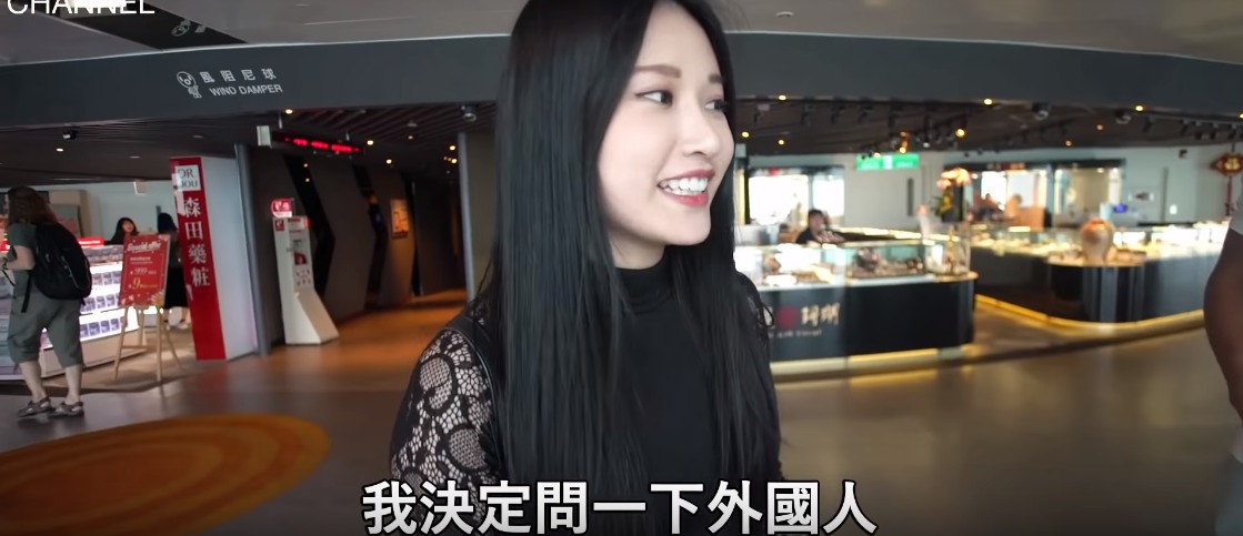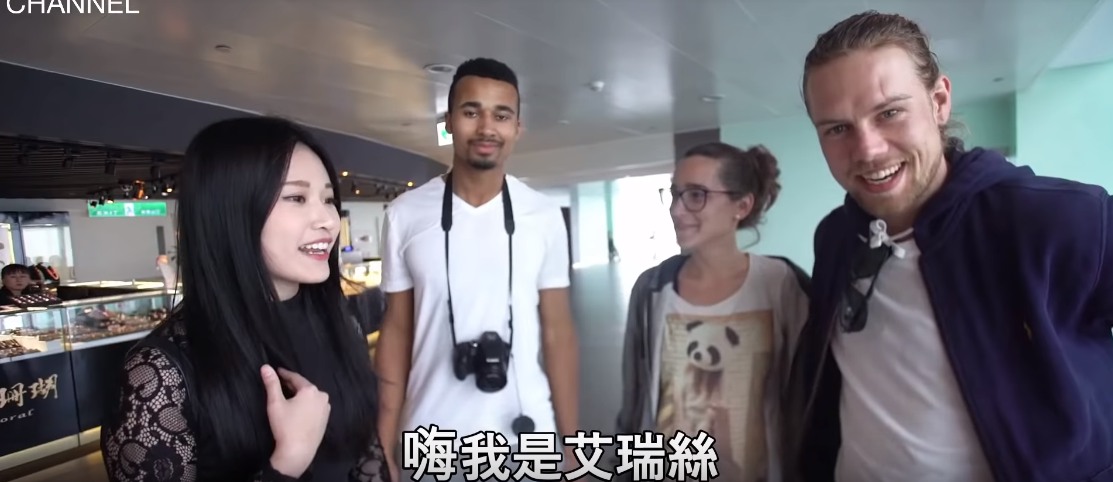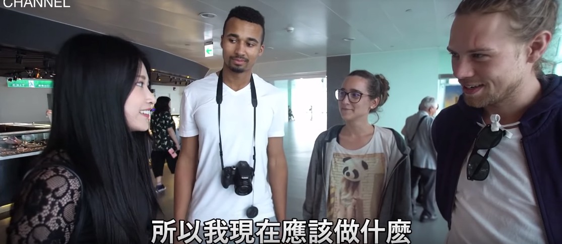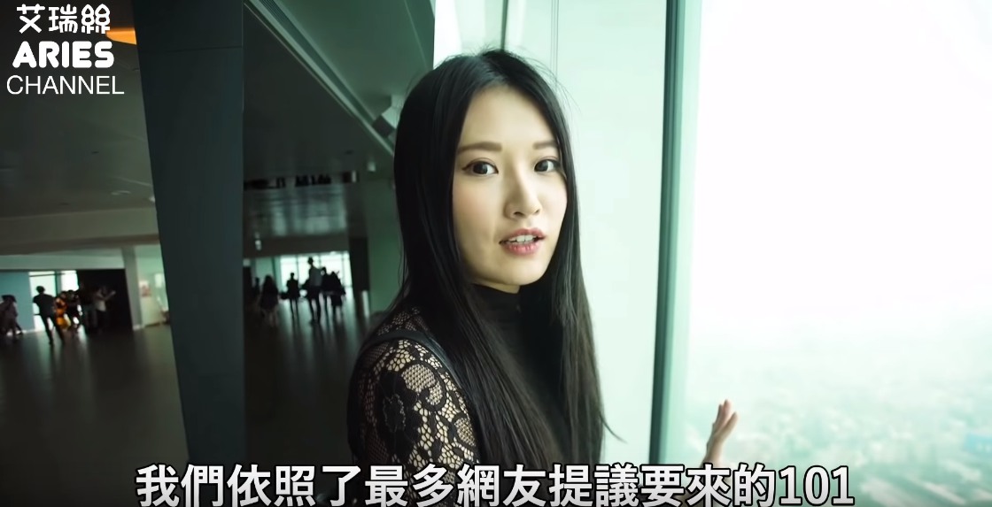 結束唱歌行程後,照著眾多網友們的意見,艾瑞絲打算到101大樓,不過抵達之後,除了從高樓俯瞰街景外,艾瑞絲不知道該做些什麼,因此她打算隨機問路人:「她應該做什麼?」,更因此秀出流利的英文實力,非常口語、流暢的和外國人交談,外國人更是意見她:「可以做一些喜歡的事情或者我們可以共享美食」,艾瑞絲爽口答應,更大方地請他們吃冰淇淋,最後還成功把自己的頻道推廣出去,讓外國朋友都納為粉絲了~她笑說:「拓展國外的粉絲」。