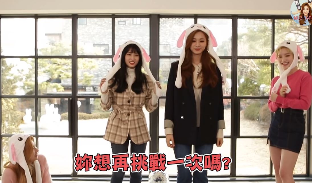 講解遊戲規則時成員子瑜表情就相當認真,手裡還不斷按壓兔耳朵練習,看起來十分在意,而搶先挑戰的多賢則是駕輕就熟的順利完成遊戲。成員子瑜就接著出聲表示「換我!」,音樂一開始子瑜的表情還相當凝重,隨著挑戰快要結束,子瑜的笑臉才逐漸浮現,甚至跟著音樂左右晃動身體。
