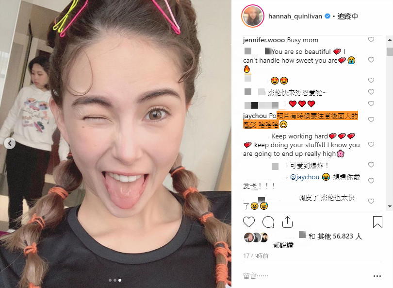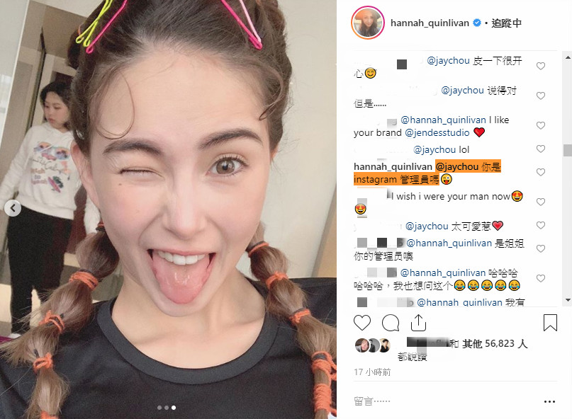 只不過第二張和第三張照片,昆凌似乎沒有注意到身後的人,一個穿著黑色長褲和白色上衣的女子從她身後路過,且其中一張還只有半身,讓周杰倫看了忍不住說:「Po照片有時候要注意後面人的感受,哈哈哈!」讓網友們也笑成一片。沒想到昆凌也不是省油的燈,無情回覆周杰倫:「你是instagram管理員嗎?」一句話直接打趴天王。