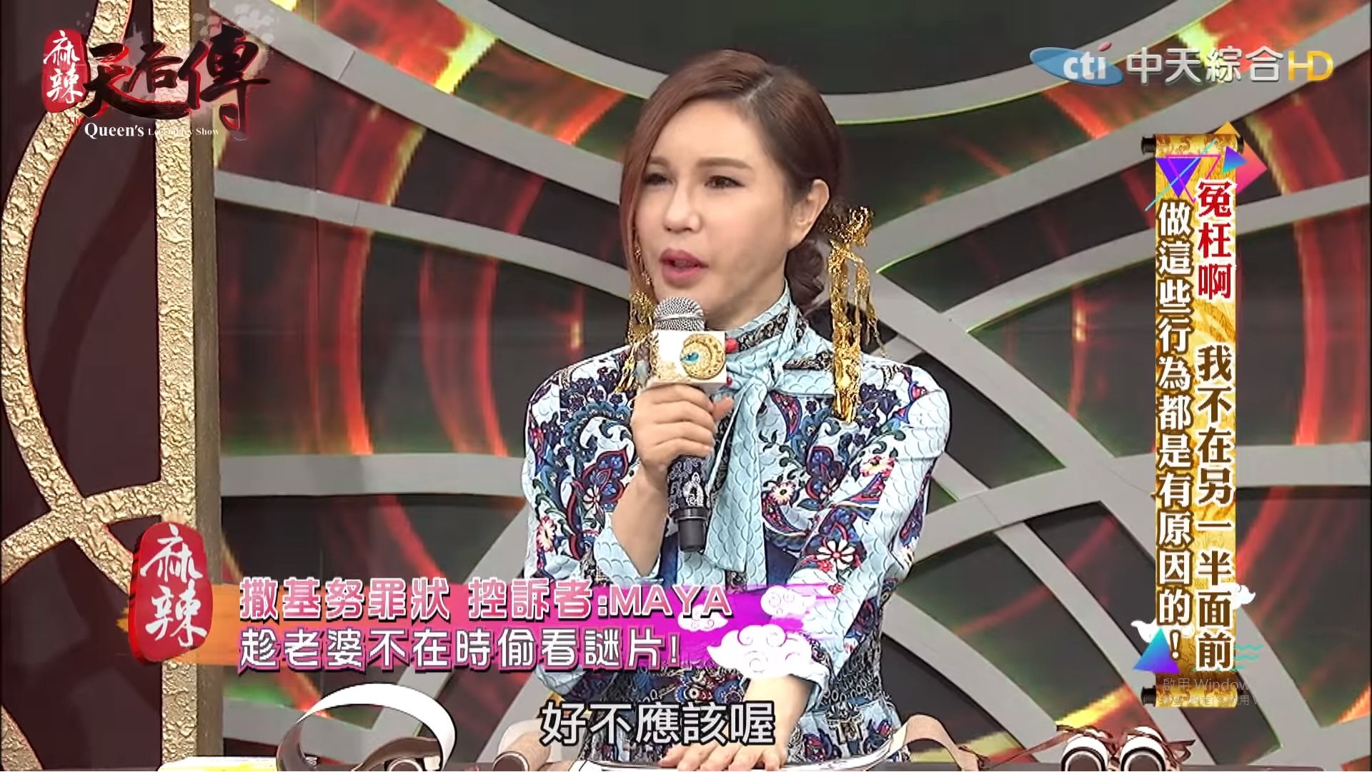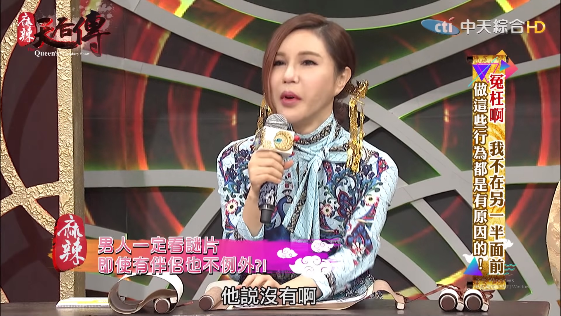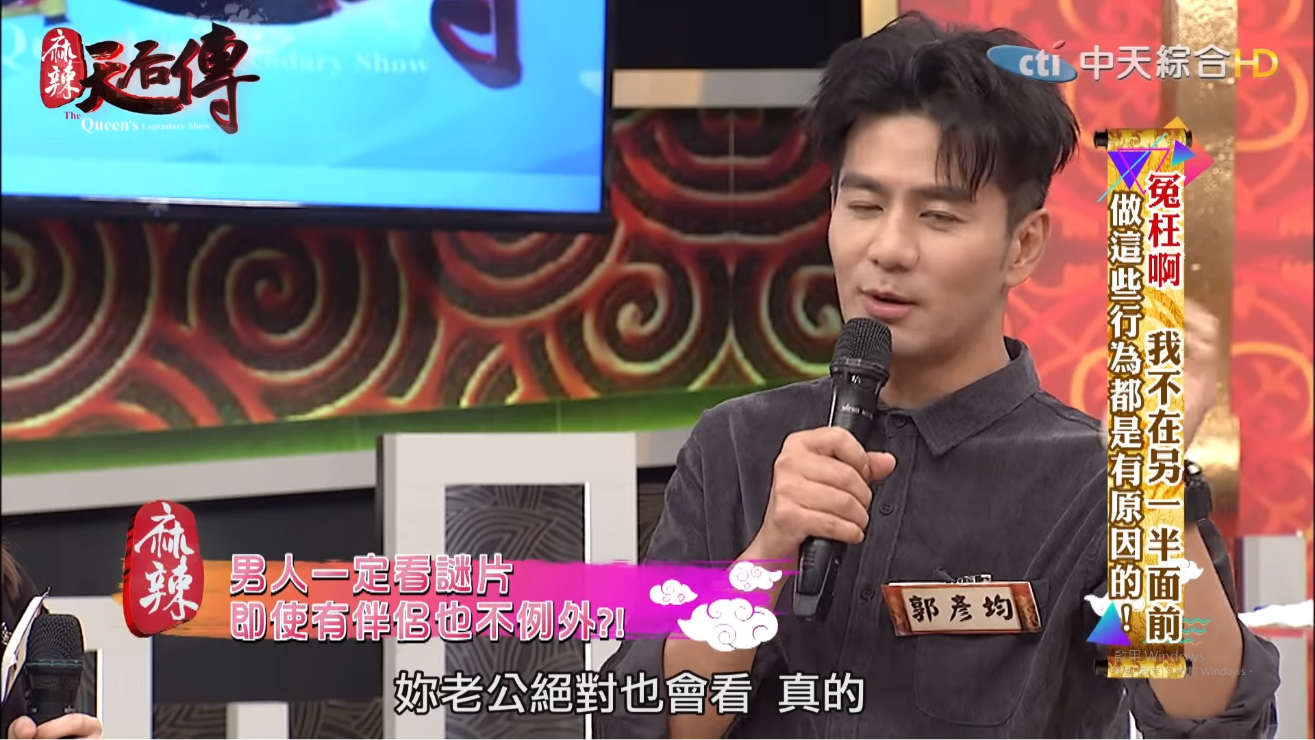 知名談話性綜藝節目「麻辣天后傳」由利菁擔任主持人,製作單位更別出心裁地加入了「古裝」元素,讓觀眾對這個節目有耳目一新的感覺。12日節目上討論到「我不在另一半面前做這些行為都是有原因的」主題,其中來賓撒基努表示自己會瞞著老婆看謎片,其他來賓無論是男生或女生也都能夠理解這樣的行為,只有利菁一聽到就說:「好不應該喔!」,但一旁的郭彥均隨即表示:「這是正常的」,其他來賓紛紛點頭贊同。