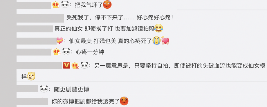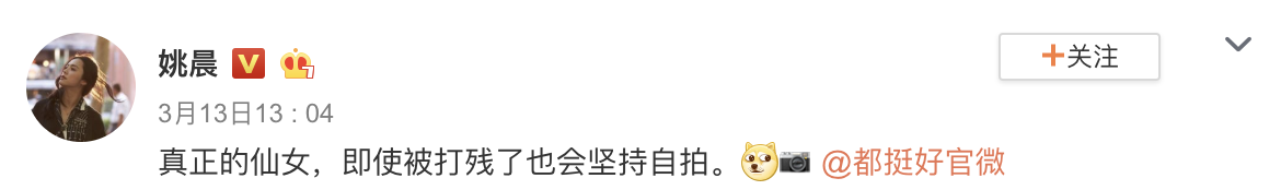 姚晨昨日發了她被毆打後,臉部還有血漬殘留的照片,並寫下:「真正的仙女,即使被打殘了也會堅持自拍。」,網友見狀後也紛紛留言:「哭死我了,停不下來了…… 好心疼好心疼!」、「仙女被打了也是很美的仙女」、「可心疼死你了」、「把我氣壞了」,然而也有一部分的網友紛紛崩潰表示自己「被姚晨劇透了」。