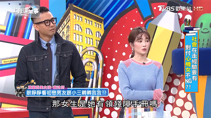 沒想到3個人還成了同班同學,她親眼目睹兩人在班上卿卿我我,再加上那個女生有公主病,「女生說怕燙,會碰到手」,所以中午都要男友替她蒸便當;肚子餓的時候也會用娃娃音撒嬌,要男友替她跑腿,男友替對方服務的周周到到,連舒子晨都忍不住說:「這個女生她有領殘障手冊嗎?」