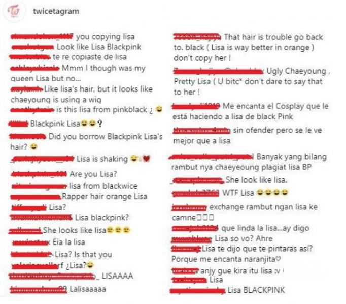 像是去年6月TWICE回歸時,彩瑛在官方IG分享染了一頭橘紅髮色的自拍照,然而卻剛好和另一女團BLACKPINK成員Lisa的頭髮撞色,引起不少BLINK(BLACKPINK粉絲名)到TWICE的官方IG留言認為他們抄襲髮色,甚至情緒激烈表示「很醜,Lisa比你漂亮太多了」、「你抄襲Lisa」、「這明明就是Lisa髮色」,雖然仍有理性粉絲為此事道歉,卻仍引起不小爭議。