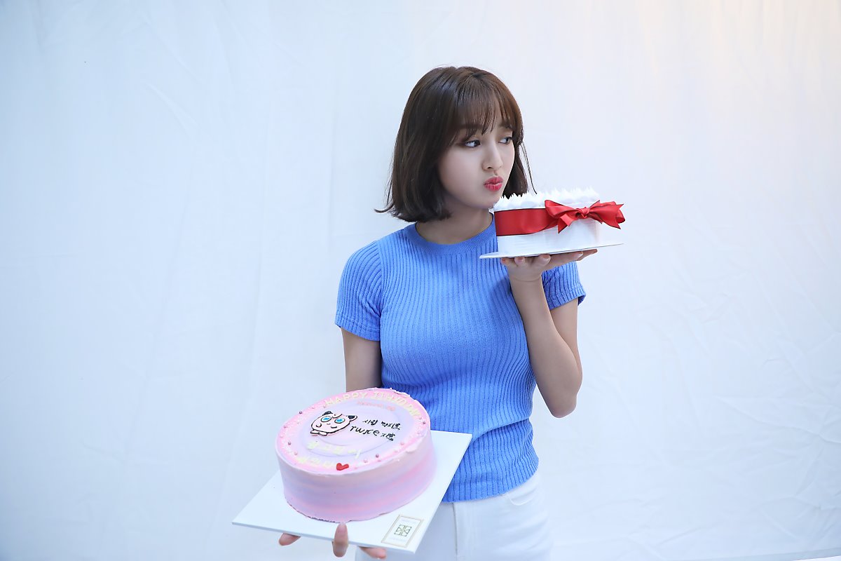 事實上,拍攝當天適逢志效2月1日的生日,當天TWICE也趁拍攝空檔為志效慶生。照片中,工作人員驚喜送上兩個生日蛋糕讓志效十分驚訝,在成員的祝福下,志效先是低頭許願接著則吹熄蠟燭,最後,志效也雙手各捧一個蛋糕開心合照。