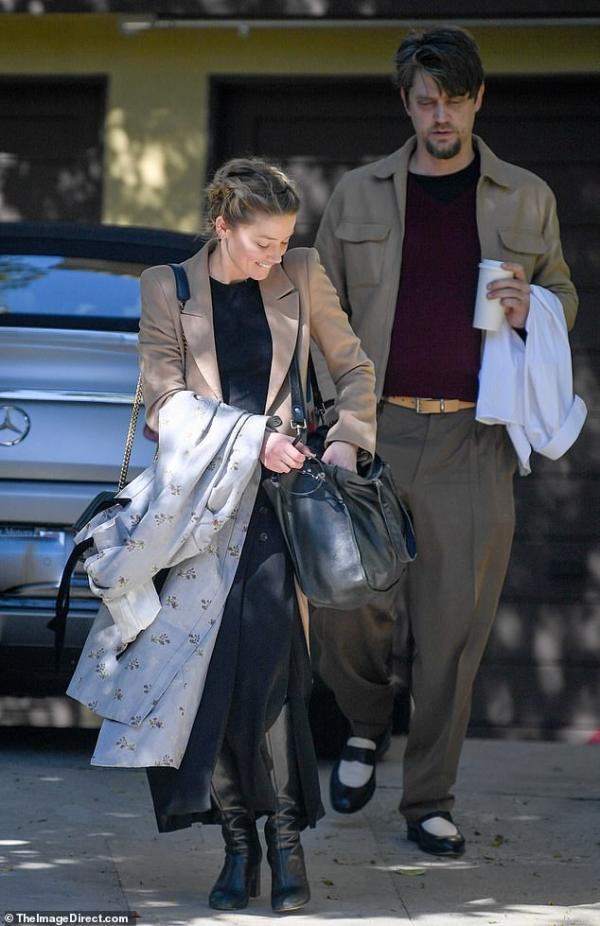 ▼與導演安迪馬希提晉升成為情侶關係,安柏赫德走出家中時忍不住不斷露出笑容,看起來春風滿面。