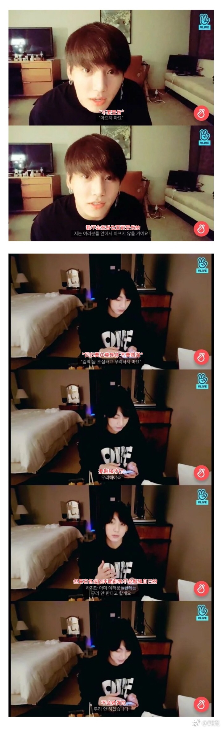 而近期BTS的第三次巡演進入倒數階段,23日,在香港演出時,柾國竟在台上當場拔下隱形眼鏡,原因就是想要看清楚阿米。在香港第三場演出上,柾國向粉絲透露為了看起來帥氣,他的眼睛帶了變色片,話鋒一轉卻說到「因為我想要看清楚你們」,竟在台上當場拿下隱形眼鏡直呼「現在可以看得更清楚了」,最後也感性表示「一直這樣大量使用體力,會很容易覺得疲憊不堪,但隨著時間過去,我得到了更多的能量」,喊話期待下一場演出的到來。