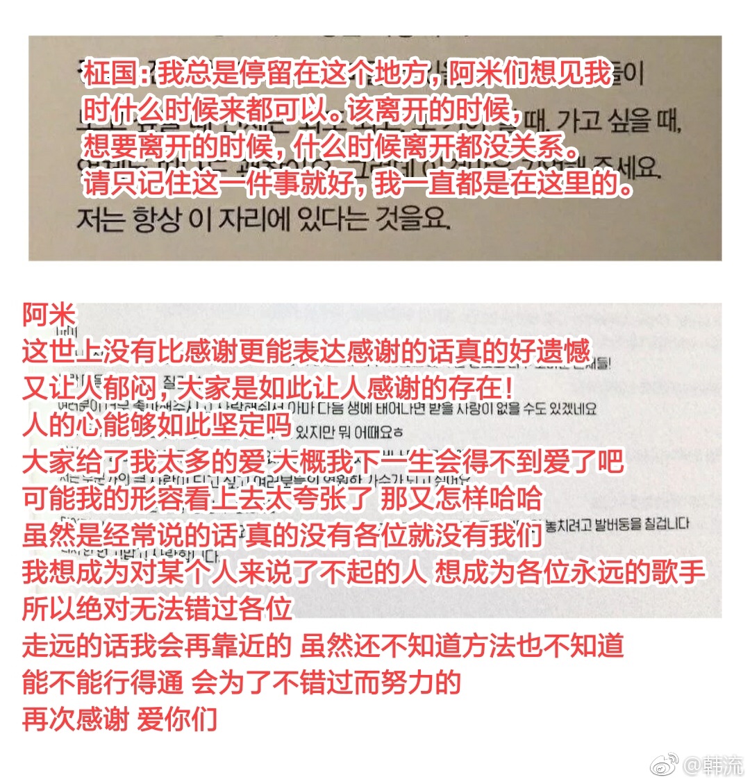 韓國男團防彈少年團自2013年出道以來,短短6年多的時間就在世界各地打響了知名度,替KPOP創造了奇蹟。走紅原因數不清,除了歌曲內容富有積極正面的力量、提倡性別平等外,他們的粉絲專頁皆為成員們親自經營,拉近與粉絲們的距離。近日,成員柾國對粉絲所做的一舉一動,被網友收集出來討論,過去柾國曾向阿米們表示「沒有阿米無法活下去」、「大家是如此感謝的存在」、「阿米們想見我時甚麼時後來都可以」等告白內容都一一出土。
