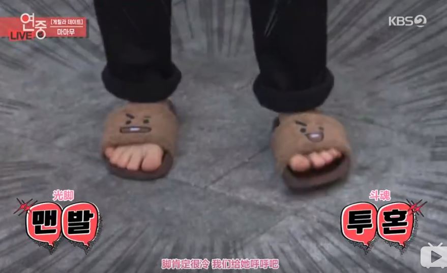 韓國女團MAMAMOO上周終於以全新專輯《White Wind》回歸,更將在下月19日舉辦專場演唱會,近期則上便不少綜藝節目宣傳新曲,15日,MAMAMOO則現身節目《演藝家中介》,4成員就在首爾街頭勘起粉絲見面會,其中一名女粉踩著拖鞋現身,MAMAOO還二話不說全員蹲下替粉絲「吹氣」取暖,不過卻被眼尖的網友發現,那雙拖鞋其實是BTS的周邊商品,意外插曲也引起網友討論。