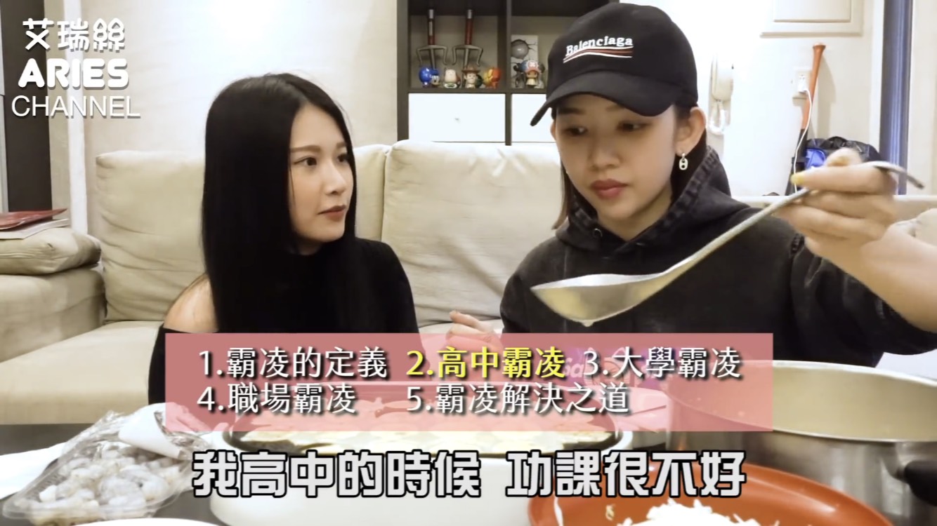 艾瑞絲Aries過去因為遊戲實況打開知名度,年紀輕輕的她做過許多行業,外型甜美、姣好的她從去年轉當為Youtuber,更是加入反骨二軍的行列,人氣逐漸升高的她,個人頻道更是突破10萬訂閱。這次她展開新的談話性企劃,不僅邀請好友「宣琳」,談話內容更是非常具有探討性的「霸凌」議題,艾瑞絲更因此回憶過去曾被霸凌的經驗。