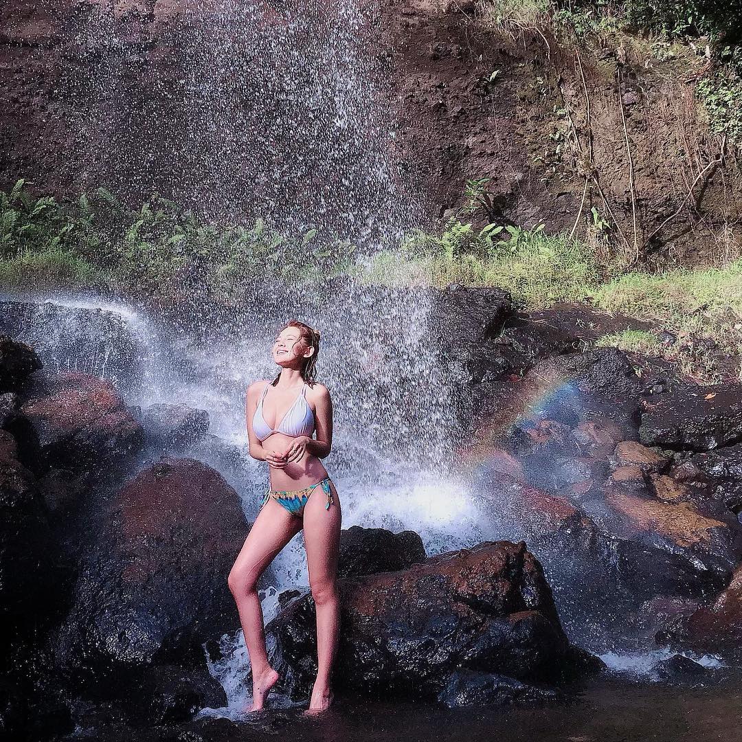 同為主持人的「鮪魚」也一邊在IG分享美照,她透露一行人穿越叢林,走了30分鐘的下坡路程,終於來到美麗的天使瀑布,她表示製作單位一行人大約是下午三點半的時間來此處,但是這裡「既不曬,人也幾乎都走光了」剛好可以享受專屬的時光,也大讚這裡就像雜誌封面般「不愧是有號稱彩虹盡頭的天使瀑布,隨便怎麼拍都是vogue大照」。