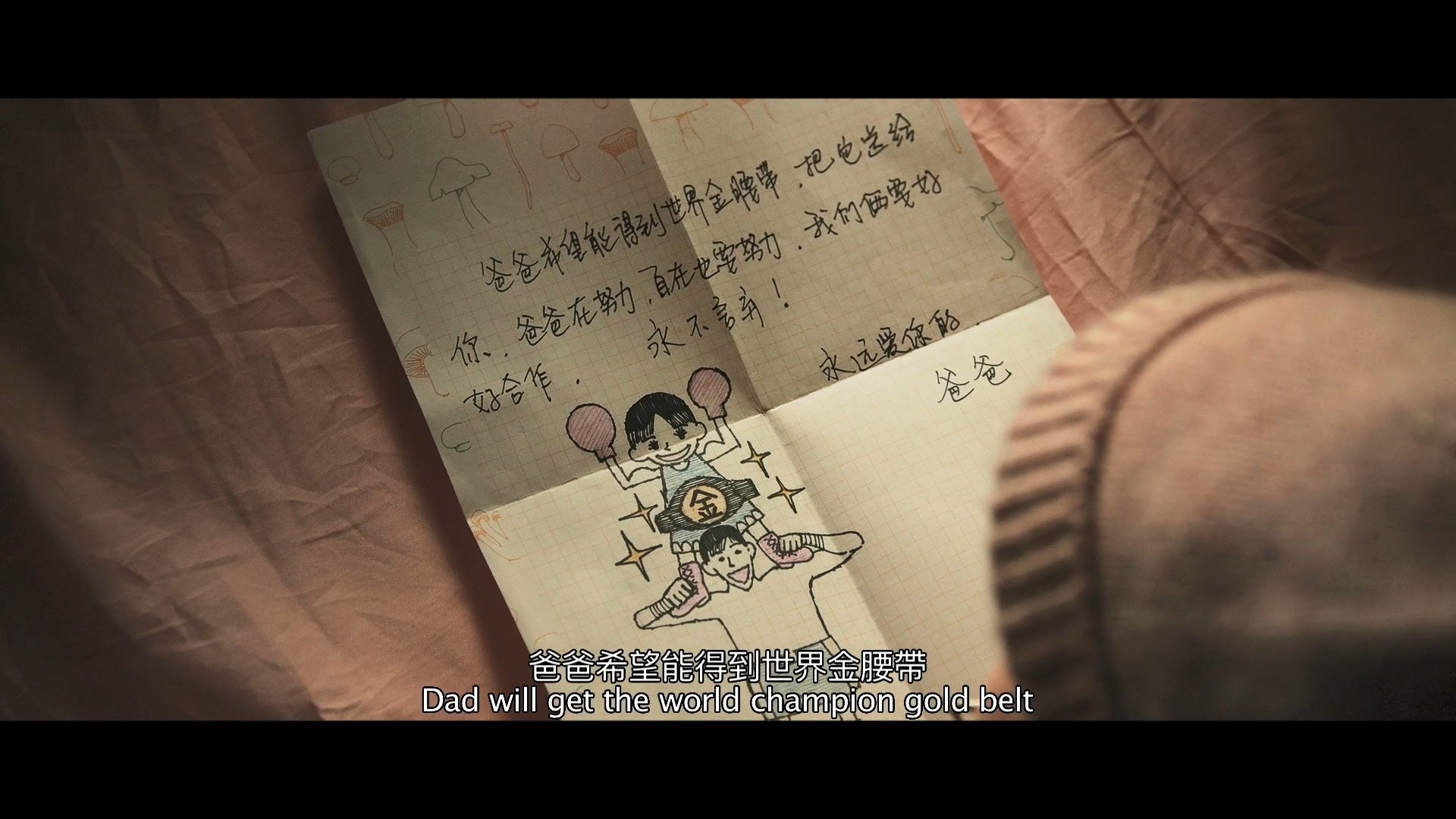 在發佈會現場也曝光了影片的首隻預告片,劇情講述了在拳壇上所向披靡的拳王周始(韓庚飾演),因一次意外被判入獄五年,等他出獄後妻子離世,只剩女兒周自在等他,自此後他與女兒相依為命。但年幼的女兒被發現患上了白血病,為了激勵病痛中想要放棄的女兒,並同時完成女兒對於他的期盼,已經36歲的他又重返拳台,用血肉模糊的拳頭一次次向女兒證明「永不言棄」。