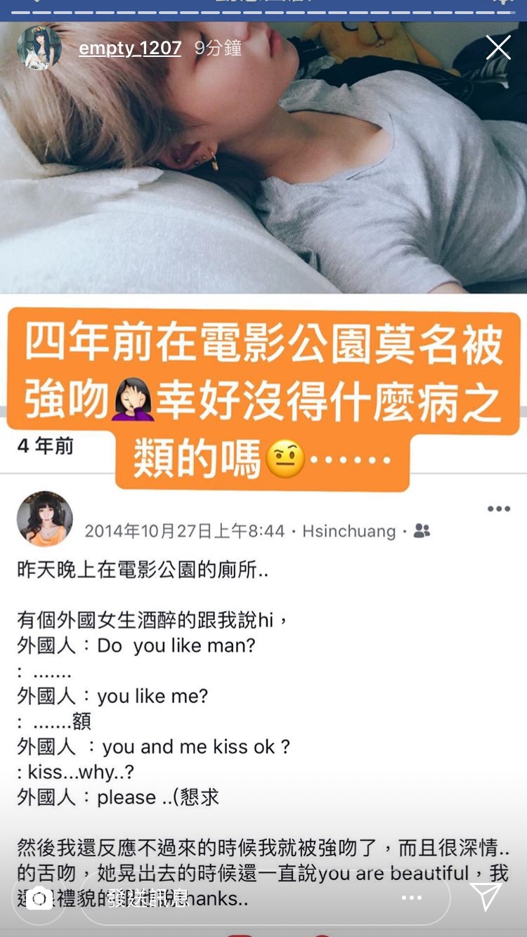 而事實上這已經不是本本第一次遇到酒醉外國人了,本本過去便有透露過自己在學生時期,曾經在西門町電影公園遇到酒醉的外國女生,當時對方詢問是否可以親吻她,不過沒等她答應,對方便直接強吻上去,讓她措手不及!