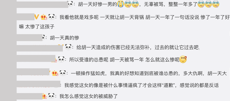 面對近一年後邶也邶發的聲明,網友紛紛留言:「一頓操作猛如虎,我真的好想知道到底被誰慫恿的,多大仇啊」、「所以受誰的慫恿呢 胡一天被罵一年 怎麼就這麼慘呢」,也有網友認為隔了這麼久又突然出面說明有些怪異,說道:「我怎麼感覺這女的被威脅了」、「我感覺這女的像是被什麼事情逼瘋了才會這樣道歉,感覺說的都是反話」