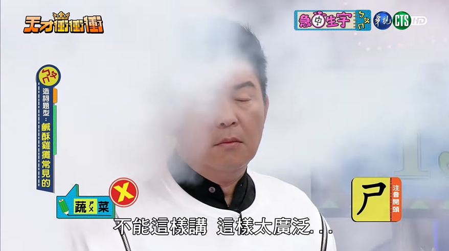 但徐乃麟對於敵對的答案卻相當嚴格,例如何美說了「雞」不行,一定要說出「雞排」才可以;淘汰後由曾國城對上茵茵,城城看到「ㄕ」率先喊了「蔬菜」,但徐乃麟卻立刻否決:「沒有沒有,不能這樣講,這樣太廣泛!」最後還是由徐乃麟隊伍勝出,曾國城雖然嘴裡念念有詞:「蔬菜不行啊?」但還是很有風度的下台。