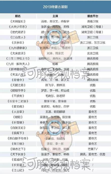 有網友就盤點了這一季即將上映的古裝劇,像是王大陸出演的電視劇《狼殿下》、任嘉倫《錦衣之下》、易烊千璽的《艷勢番之新青年》、章子怡首部電視劇《帝凰業》、鄧倫演出的《封神演義》、楊祐寧主演的《天龍八部》,還有胡一天主演的《絕代雙驕》,甚至是神話劇《新白娘子傳奇》或多或少都會受到「限古令」的影響。