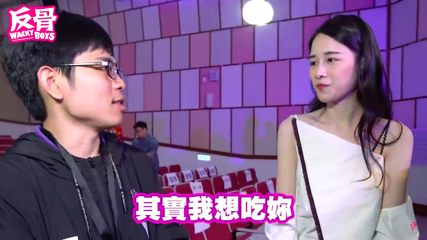 當他們訪問大食美女千千時,培根無厘頭詢問:「請問上面的空氣呼吸起來怎麼樣?」千千藉機毒舌妙回:「還不錯因為聞不到你的空氣。」當酷炫還在感動該影片特別有質感,沒有開黃腔時,培根立刻和千千討論接下來的美食行程並表示:「其實我想吃你。」千千慌張表示:「喂...警察...」