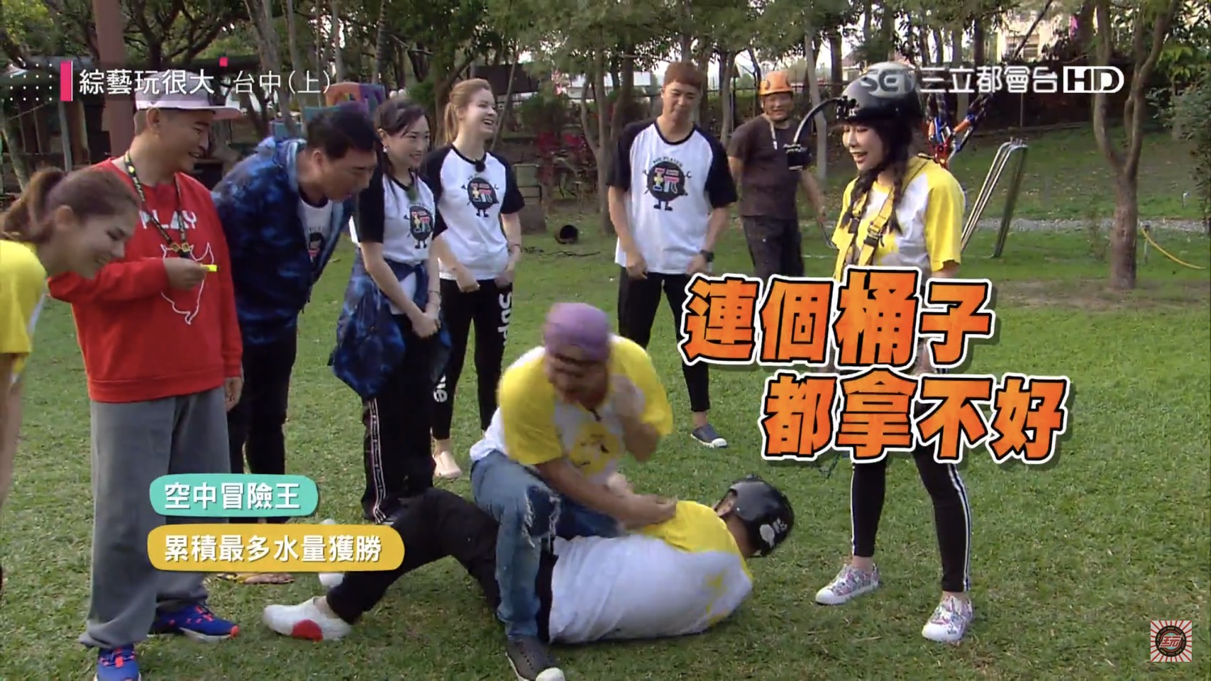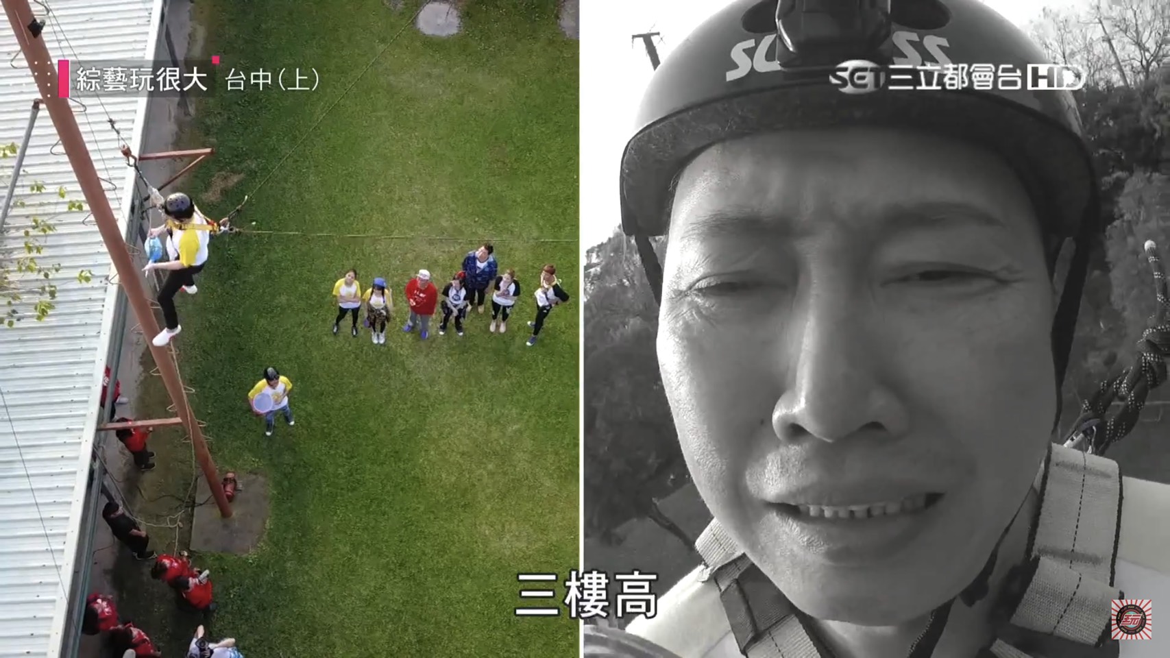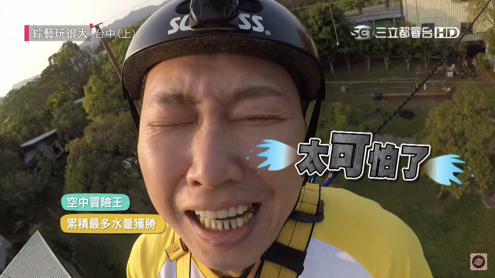 在最新一集的「綜藝玩很大」節目中,其中一個關卡是隊員乘坐高空鞦韆灑水,另一隊員在底下接水,由隊員接力完成,累積總水量最多的一隊獲勝。第一回合由趙正平代表黃隊灑水,沒想到,他一吊鋼絲上去3層樓高的位置後,卻因為怕高遲遲不敢拉插銷,直呼「太可怕了!」就這樣浪費了30秒。