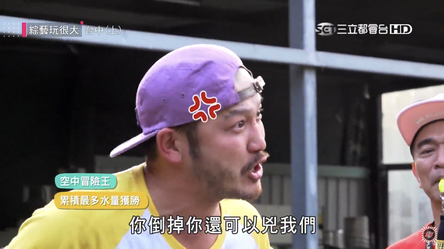 主持人吳宗憲見狀只好再給他15秒的機會,雖然看得出他很想奮力一搏,但趙正平還是遲遲不敢拉開鎖扣,就是無法踏出第一步,只能在上面不斷苦笑,KID只能無助地把水桶往上丟。不僅如此,就連趙正平輪到在底下接水,竟然也不小心手滑,把好不容易接來的水整桶打翻,讓KID氣得狂吼:「什麼意思啦!倒也倒不好,接也接不好!」